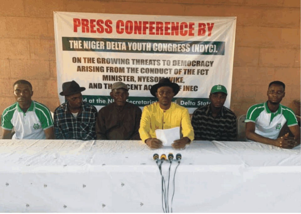 The Niger Delta Youth Congress (NDYC) has issued a strongly worded statement warning that Nigeria’s democracy is facing “growing and escalating threats” from both the Minister of the Federal Capital Territory, Nyesom Wike, and the recent actions of the Independent National Electoral Commission (INEC).